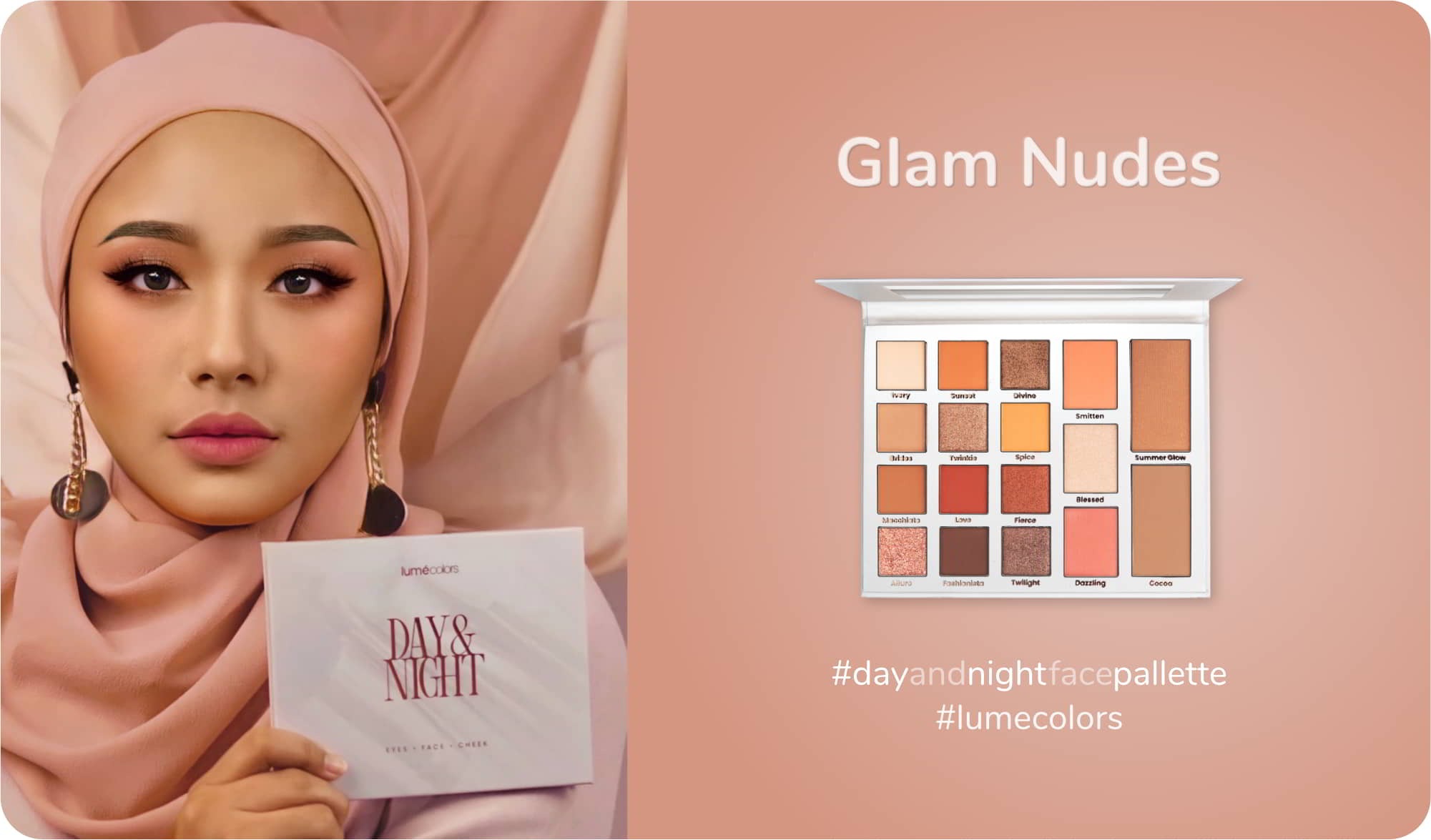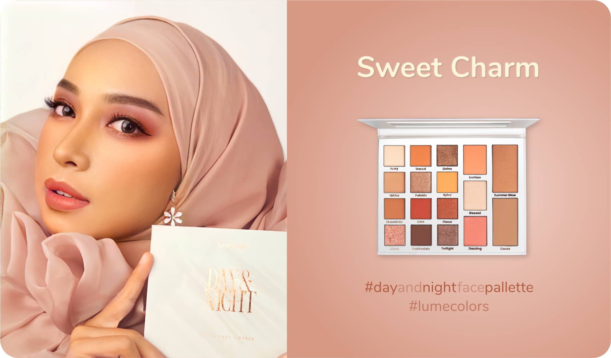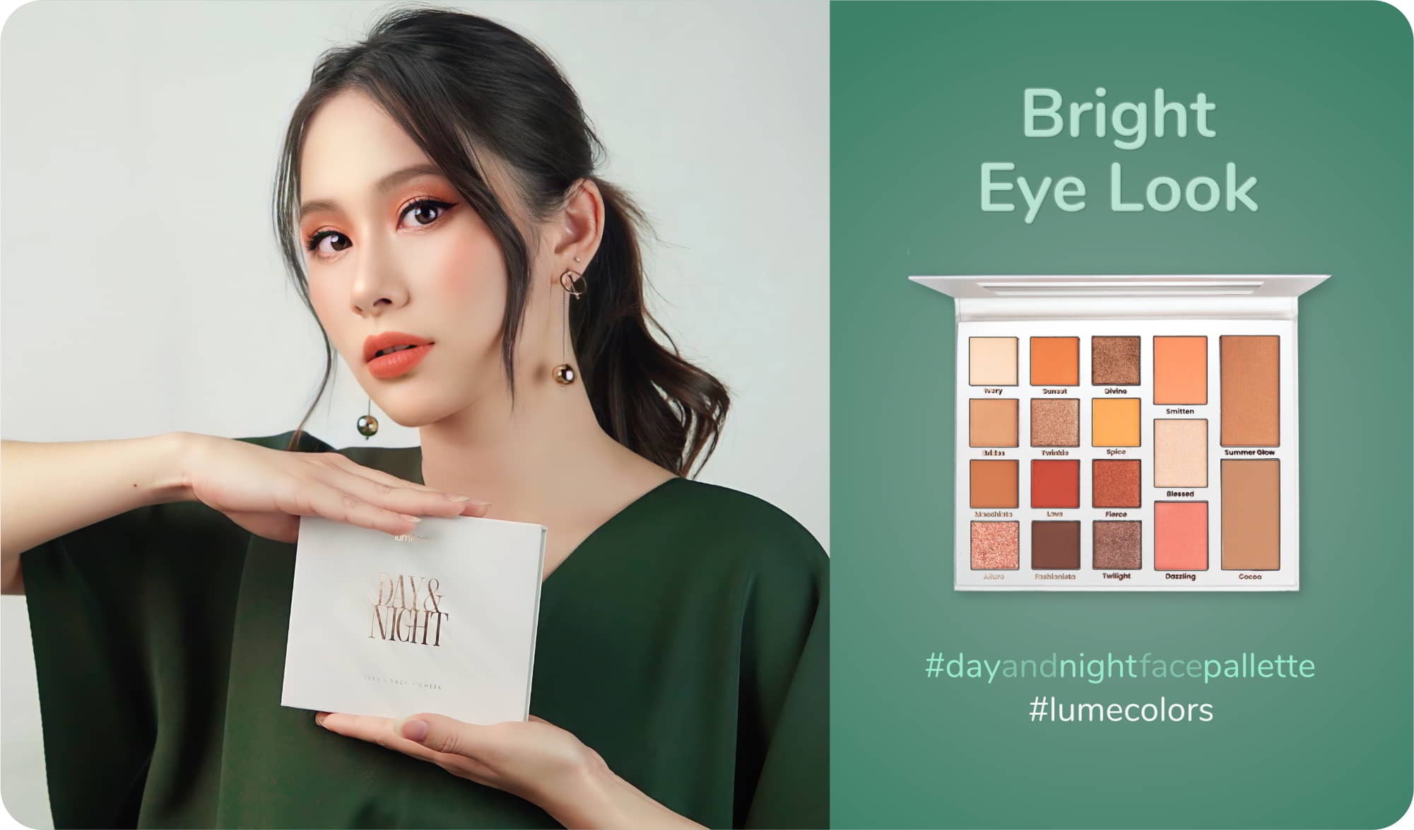 Lumecolors Day & Night Palette Eyeshadow memiliki tampilan warna yang natural sehingga cocok digunakan untuk semua jenis kulit dan dipakai untuk sehari-hari.